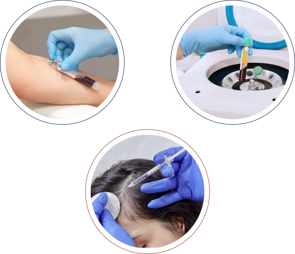 With small injections, growth factors are delivered to areas of the scalp affected by hair loss or thinning, stimulating natural hair regrowth.